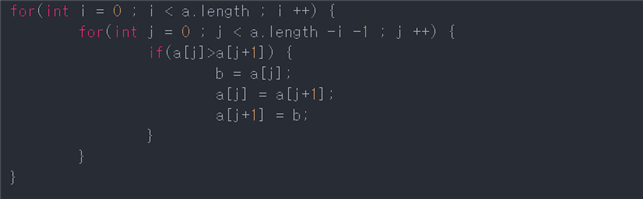 -> 이런 방식으로 두 개의 for문이 필요하며 내부에는 SWAP을 진행함.