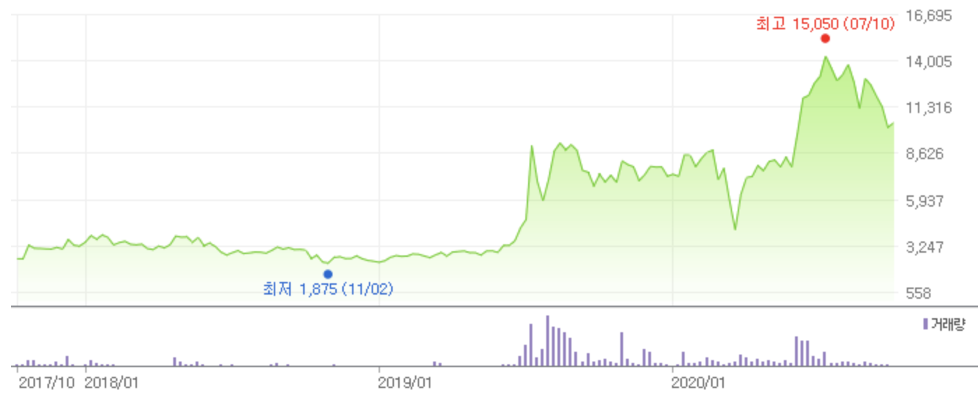 - 모멘텀 : ★★★ (언택트 이슈로 나옴 + 매출액이 점차 증가하면서, 분기 매출 보고 결과 나오면 다시 화자될 듯)