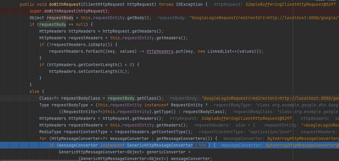 다시 Spring framework로 돌아와서 하나하나 디버깅하면서 breakPoint를 찍어봤습니다.