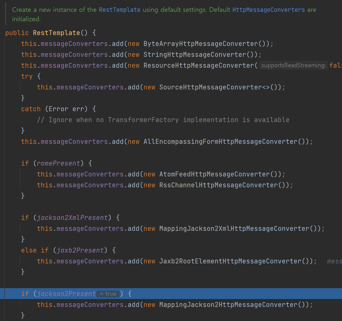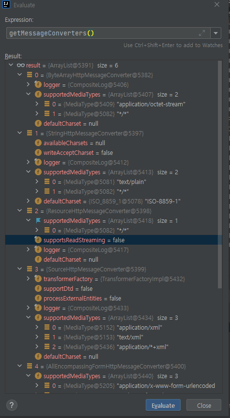 3. RestTemplate의 MessageConverters 전역변수 List에 담기는 생성자 함수 추적