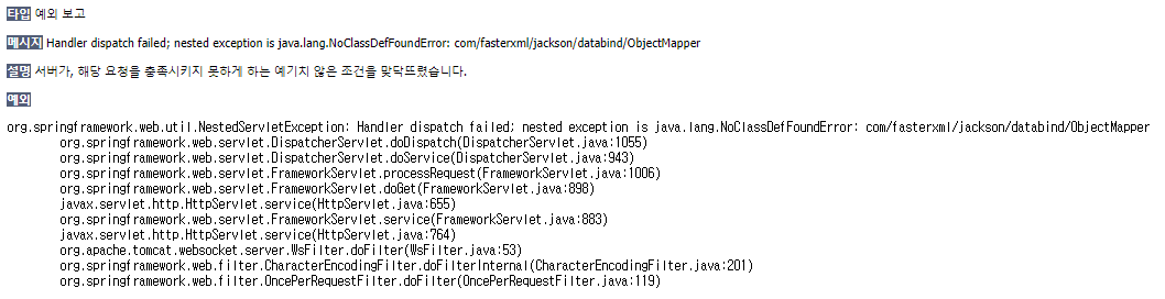 → java.lang.ClassNotFoundException 발생(ObjectMapper)