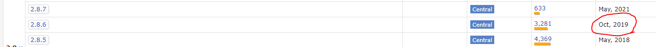 Mvn Repository 홈페이지에서 각 버전의 Date를 확인했습니다.