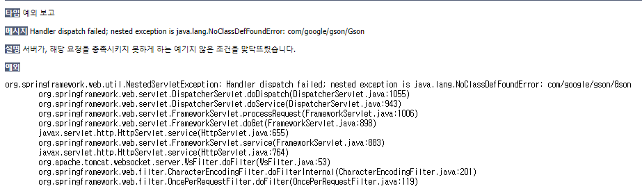 → Handler dispatch failed; nested exception is java.lang.NoClassDefFoundError 발생(Gson)