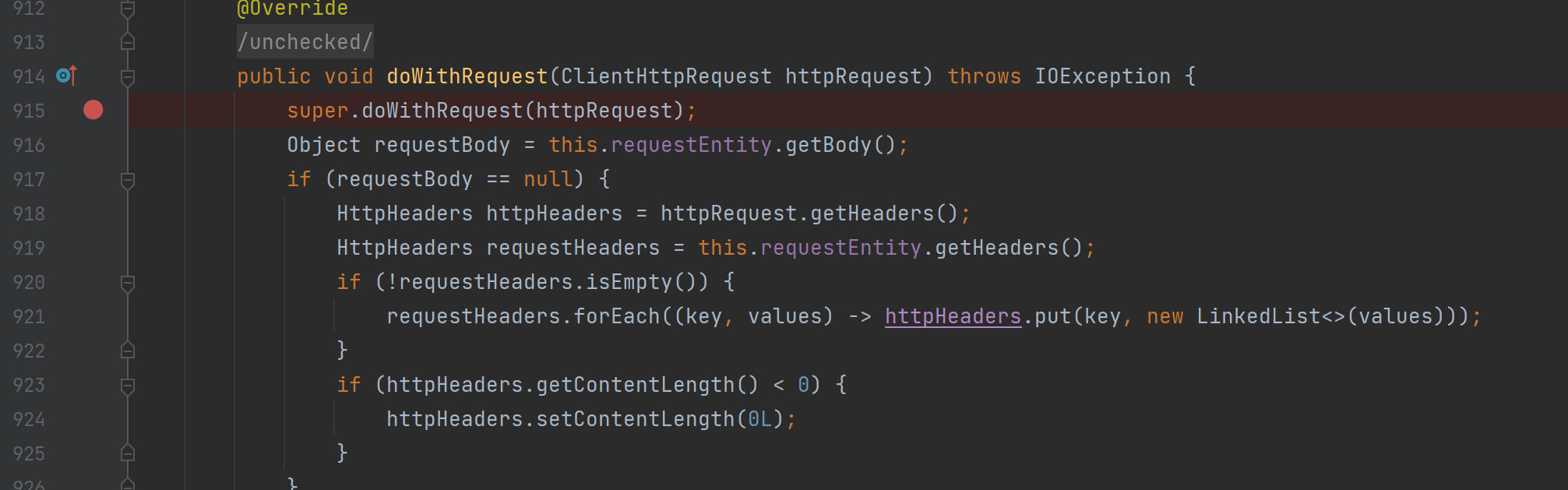 RestTemplate 클래스 안에 있는 doWithRequest() 함수를 호출했습니다.