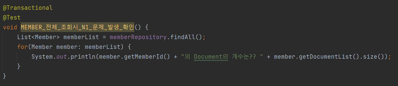 → Member 각각이 가지고 있는 하위 엔티티(Document) 조회(Member가 5개이므로, 총 5번 조회)