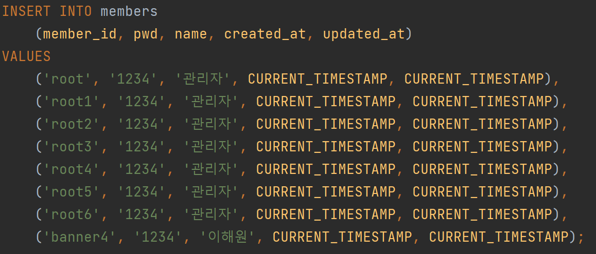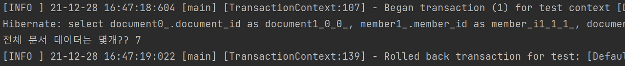 (spring.jpa.properties.hibrnate.format_sql = false여서 한 줄로 보임)