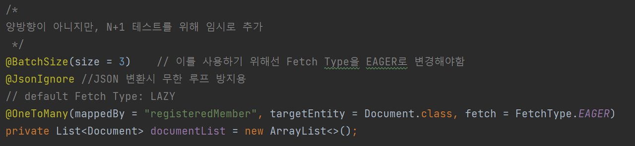 하지만, 되도록이면 EAGER를 사용하는게 나은 이유는 for loop를 통해 전체 데이터를 순회하면서 하위 엔티티를 사용하는 경우가 아니라 불특정 시점의 일부 데이터만 사용하게 되면 BatchSize가 의미없어지기 때문입니다.