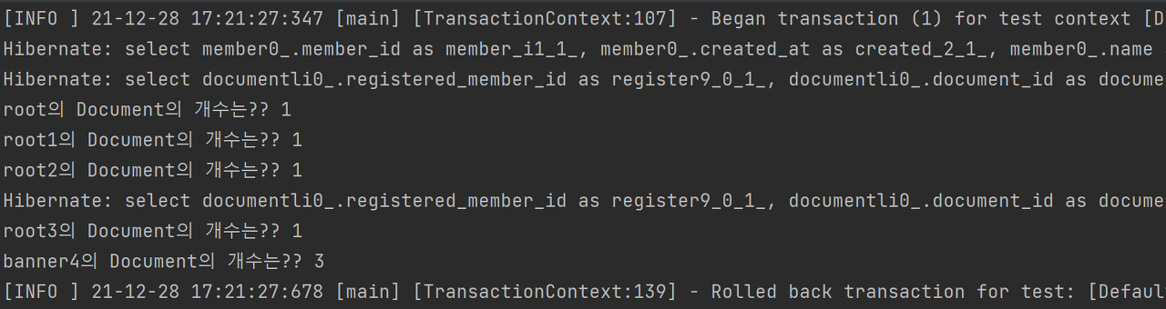 → 패치 조인은 카디션 곱이 되기 때문에, banner4라는 Member는 1개 존재하지만, 관련된 Document는 3개이기 때문에 Member List안에 banner4라는 Member 데이터는 3개가 존재하게 되었습니다.