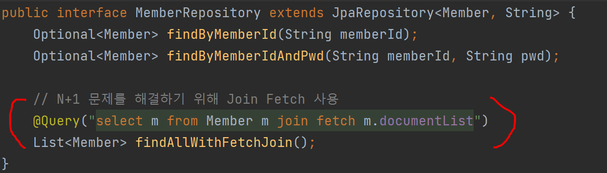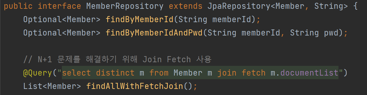 → 별도 @Query를 활용해 SQL문 안에 join fetch 사용하기