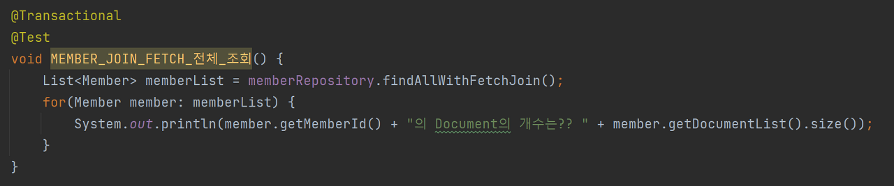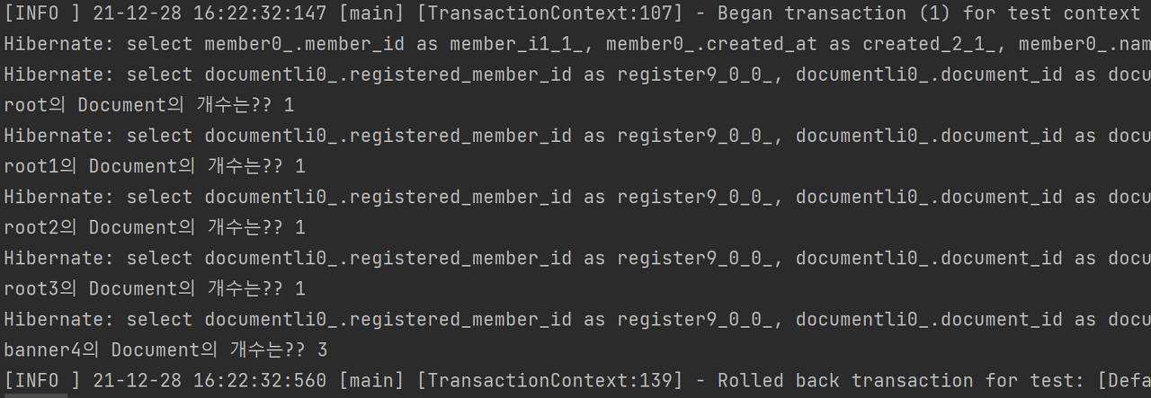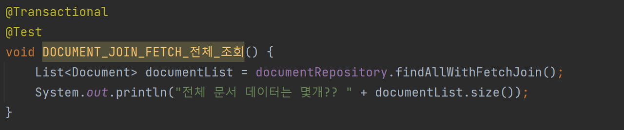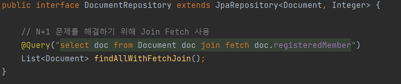 이렇듯 Document 테이블에 있는 데이터를 모두 조회하기 위해 1번만 조회하는 것을 기대했지만, Document 안에 있는 Member 하위 엔티티 때문에 총 DB조회를 6번 하게 되었습니다.