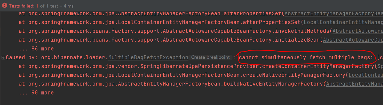 → MultipleBagFetchException 발생(두 개 이상의 1:N 컬렉션 fetch join 불가능)