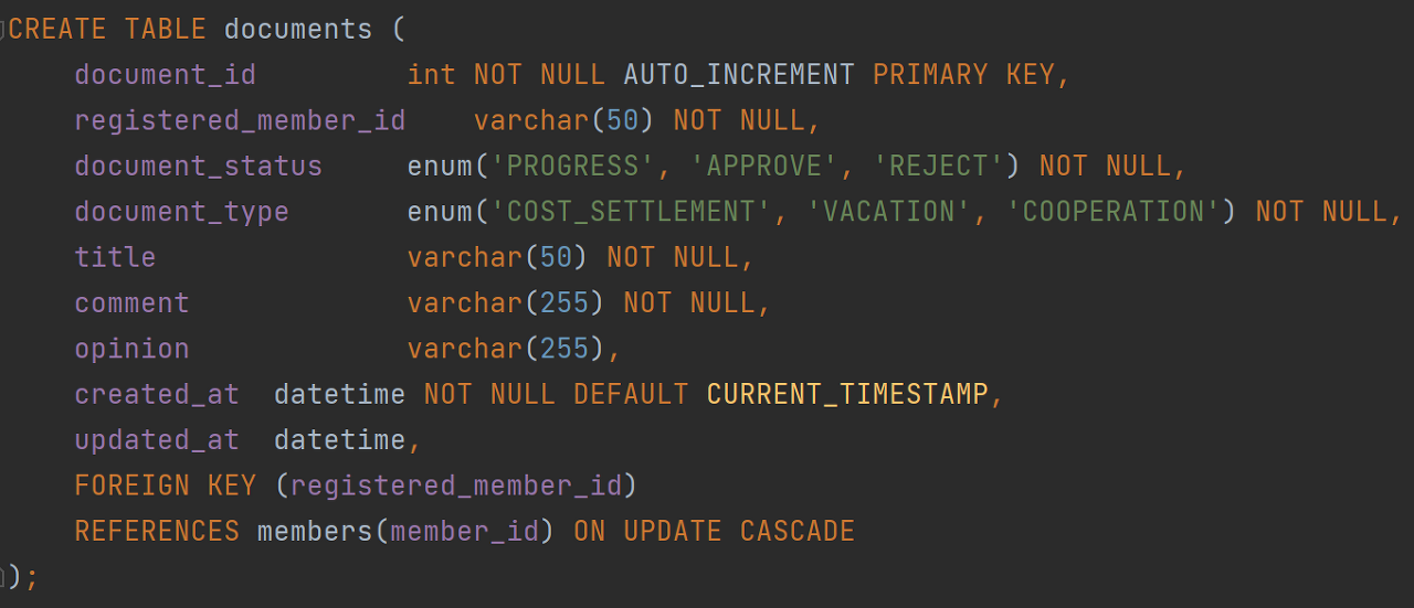 Document(문서)와 Member(사용자) 는 다대일 관계(사용자에서 문서를 확인할 수 없어 단방향)