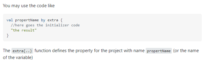 I'm migrating Gradle build scripts from Groovy to Kotlin DSL and one of the things which is not really documented is how to populate extra properties. In Groovy, I can write: ext { comp = '