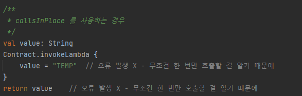 만약, 위처럼 callsInPlace를 사용하지 않은 일반적인 람다 호출 함수일 경우에는
