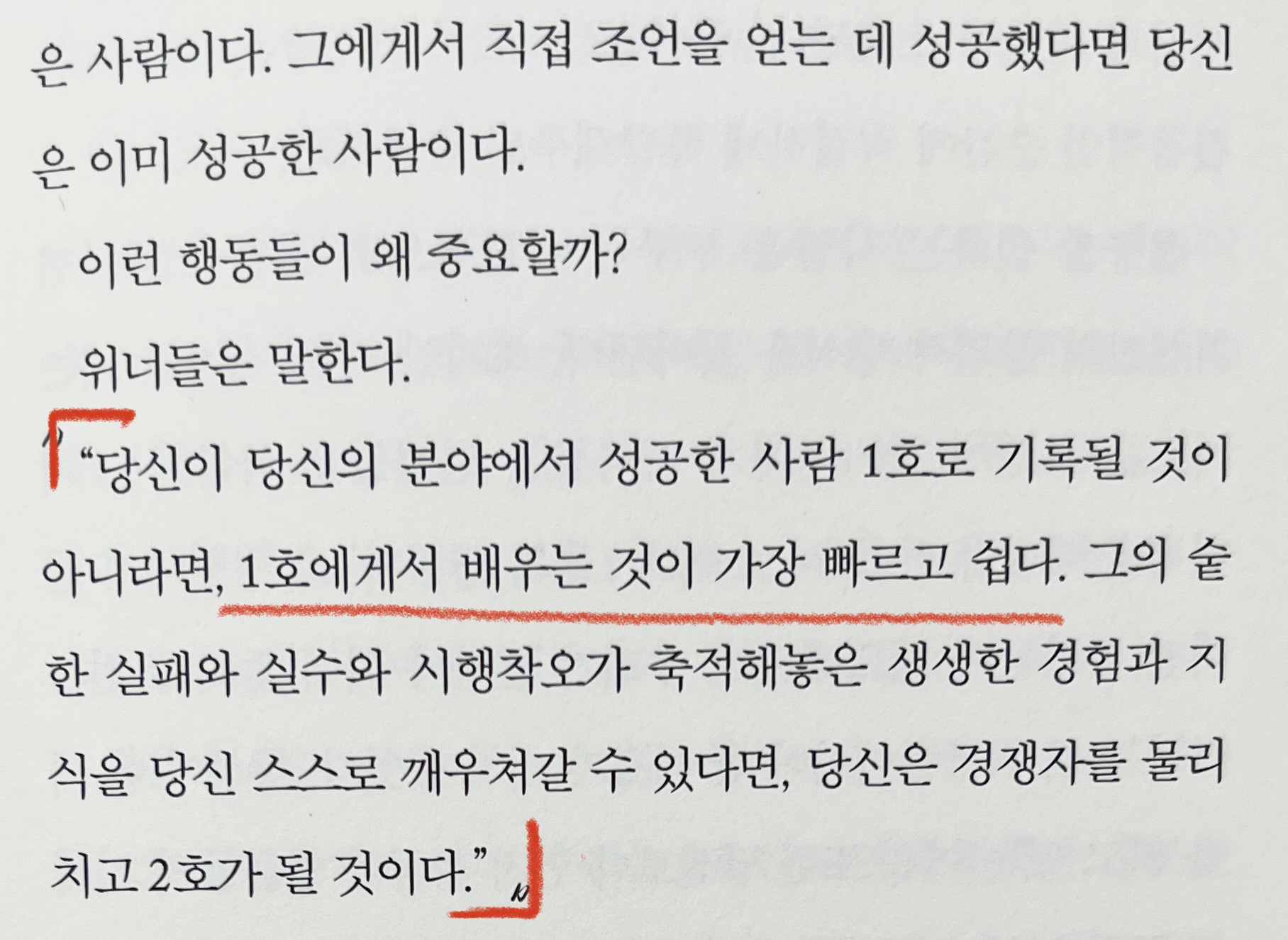 "당신이 당신의 분야에서 성공한 사람 1호로 기록될 것이 아니라면, 1호에게서 배우는 것이 가장 빠르고 쉽다.