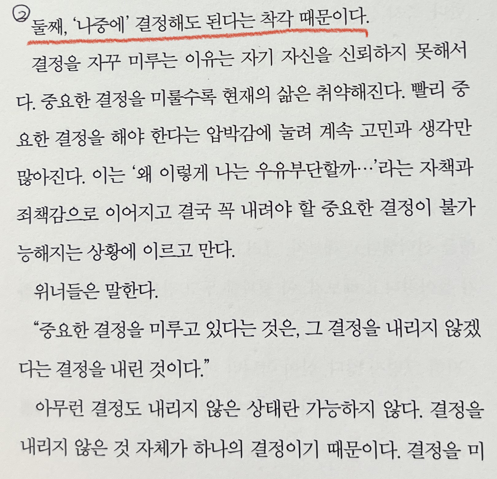 "둘째, '나중에' 결정해도 된다는 착각 때문이다."