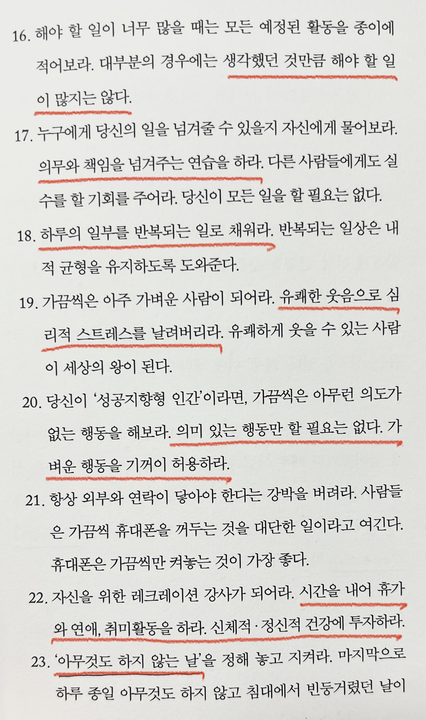 23. '아무것도 하지 않는 날' 을 정해 놓고 지켜라.