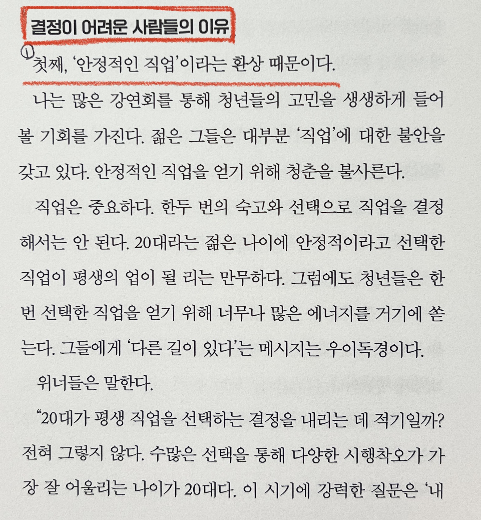"첫째, '안정적인 직업' 이라는 환상 때문이다."