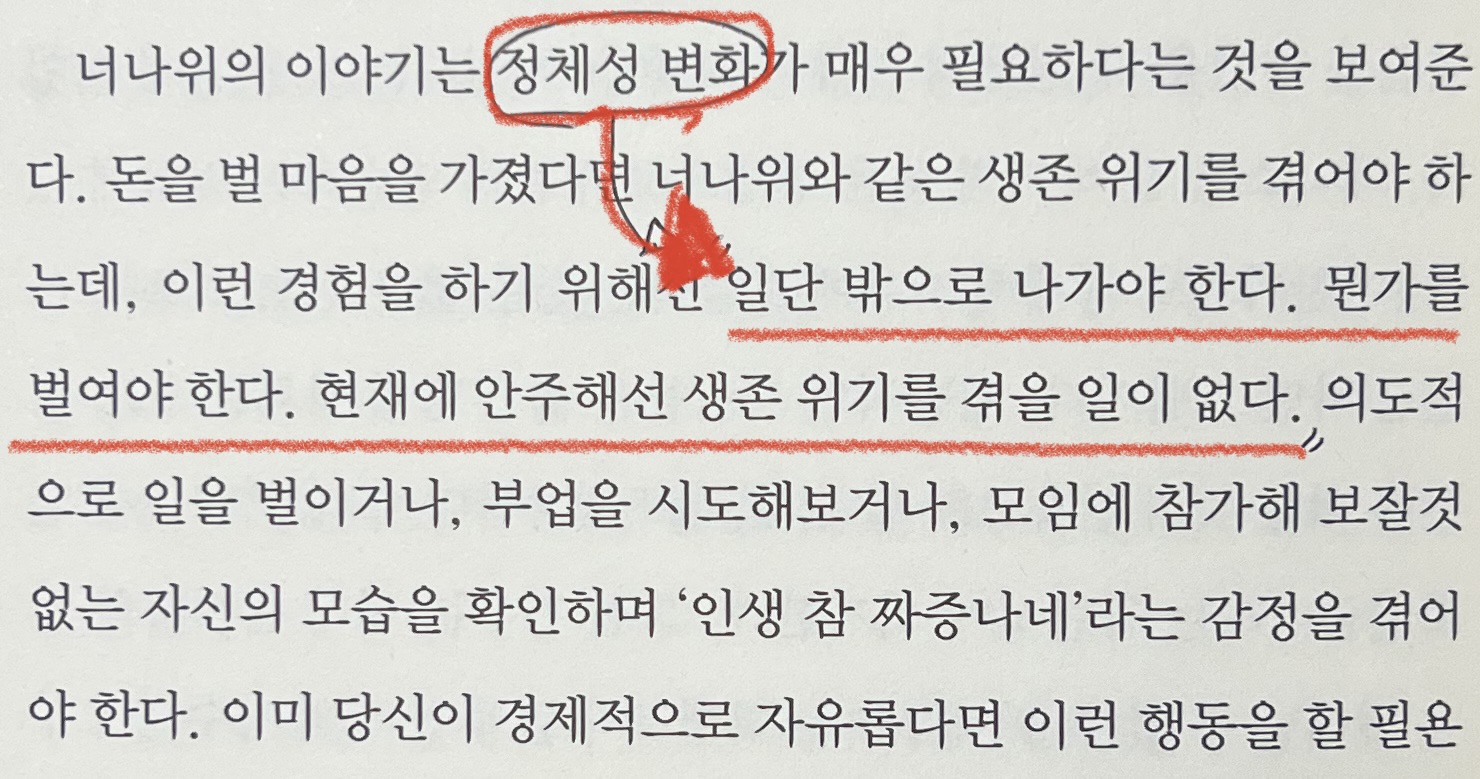 "정체성 변화 -> 일단 밖으로 나가야 한다. 뭔가를 벌여야 한다.