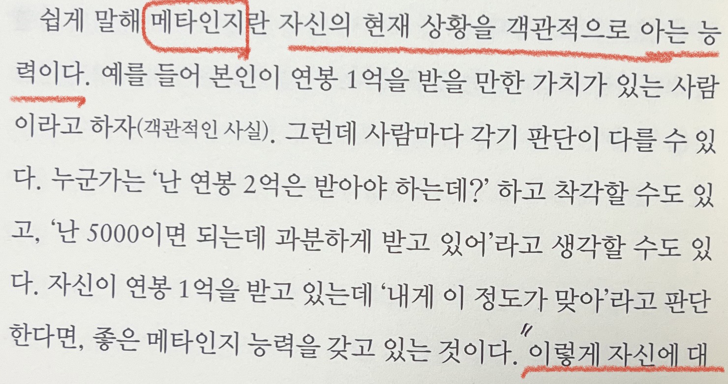 "메타인지란, 자신의 현재 상황을 객관적으로 아는 능력이다.