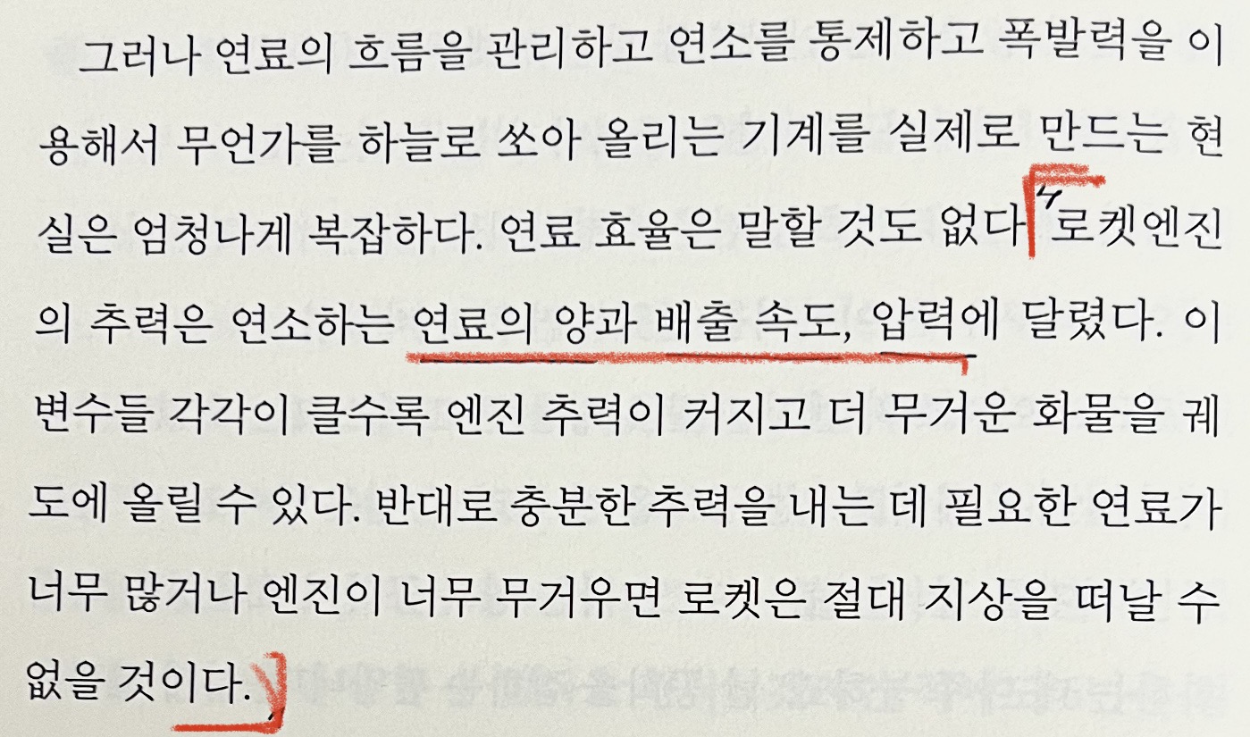 호오.. 로켓엔진은 연료의 양과 배출 속도, 압력 세 가지에 따라 힘(추력)이 달라지나보네요.