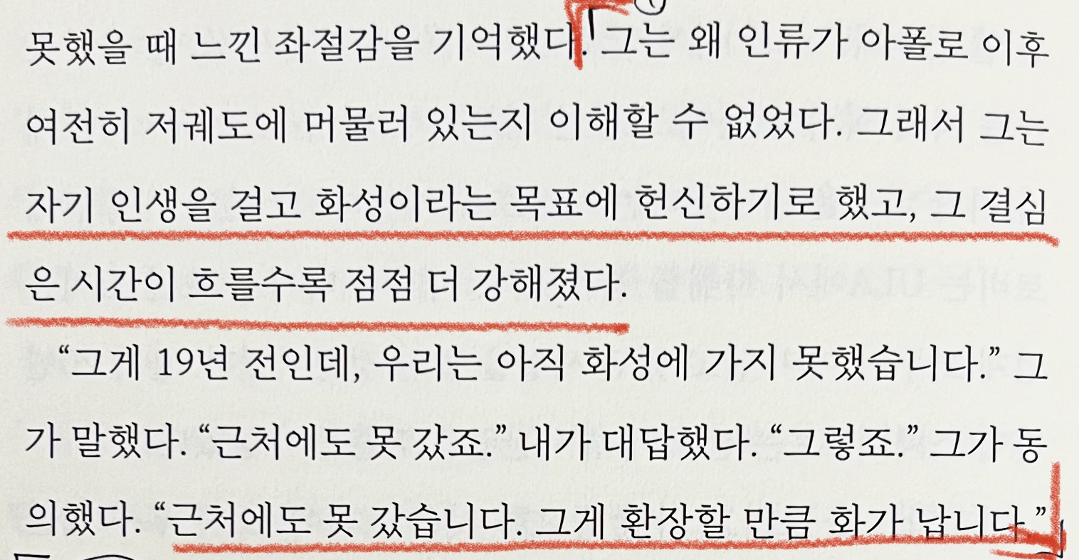 그래서 그는 자기 인생을 걸고 화성이라는 목표에 헌신하기로 했고, 그 결심은 시간이 흐를수록 점점 더 강해졌다."