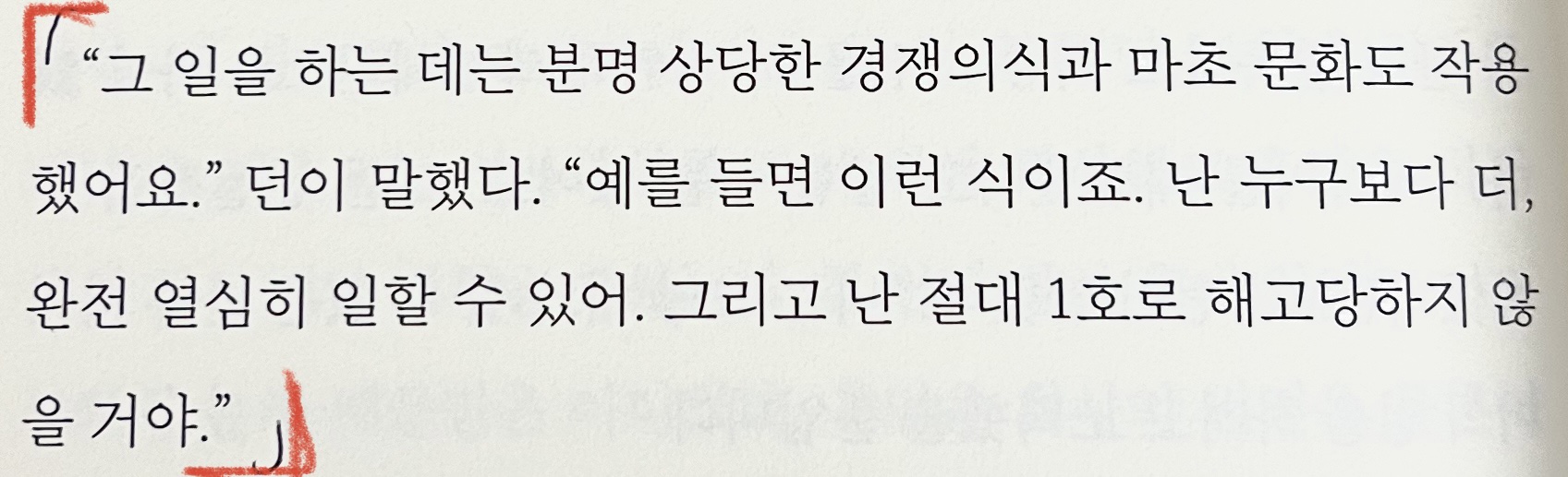 그리고 난 절대 1호로 해고당하지 않을 거야."