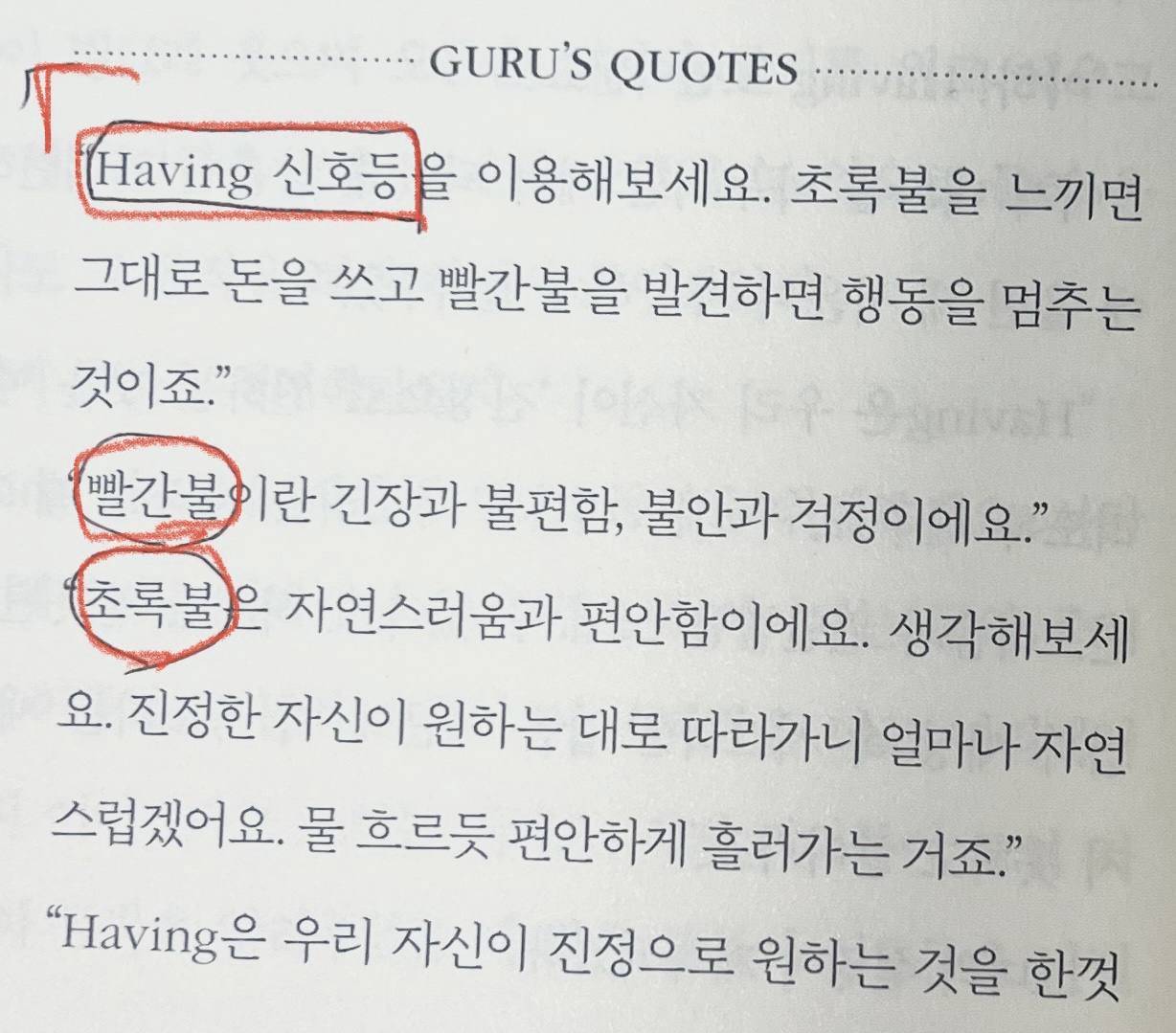 "Having 신호등을 이용해보세요. 초록불을 느끼면 그대로 돈을 쓰고 빨간불을 발견하면 행동을 멈추는 것이죠."