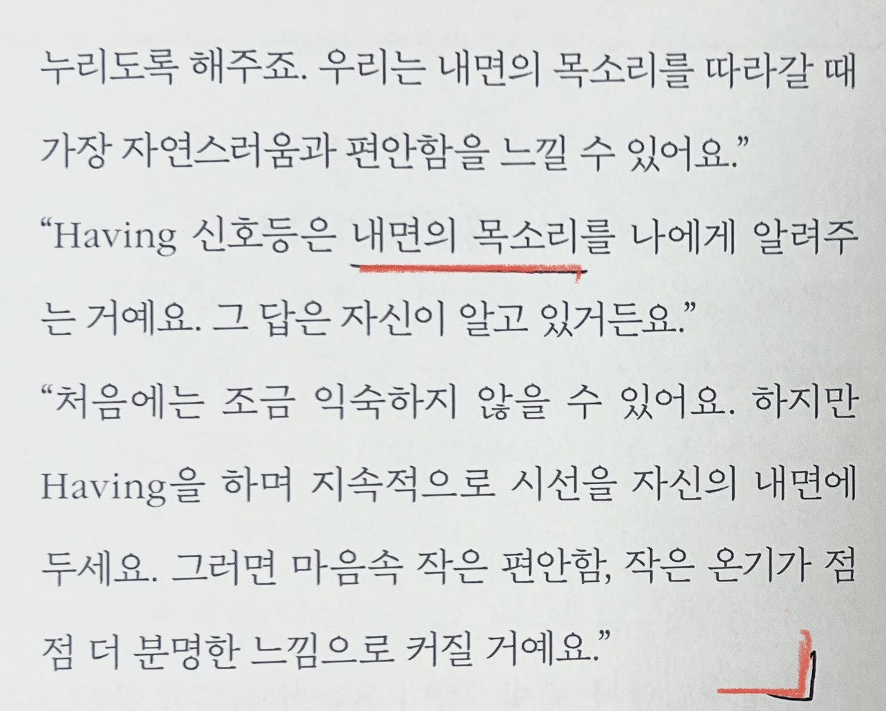 "Having 신호등은 내면의 목소리를 나에게 알려주는 거예요.