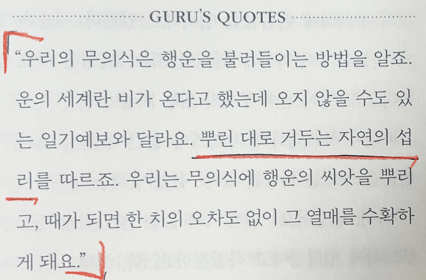 우리는 무의식에 행운의 씨앗을 뿌리고, 때가 되면 한 치의 오차도 없이 그 열매를 수확하게 돼요."