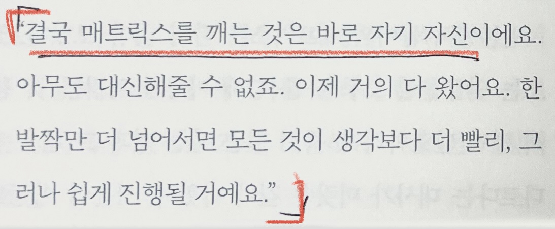 "결국 매트릭스를 깨는 것은 바로 자기 자신이에요.
