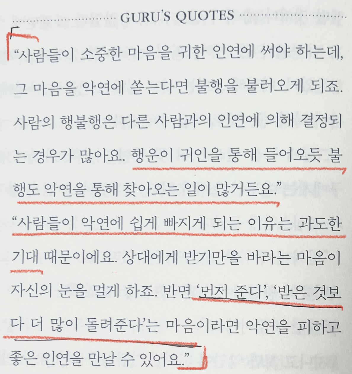 "'먼저 준다', '받은 것보다 더 많이 돌려준다' 는 마음이라면 악연을 피하고 좋은 인연을 만날 수 있어요."