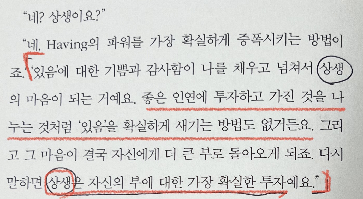 다시 말하면 상생은 자신의 부에 대한 가장 확실한 투자예요."