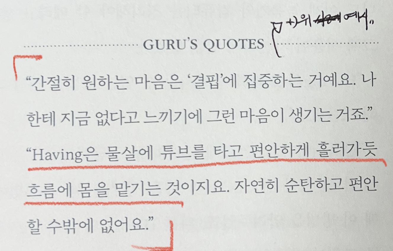 "간절히 원하는 마음은 '결핍' 에 집중하는 거예요.