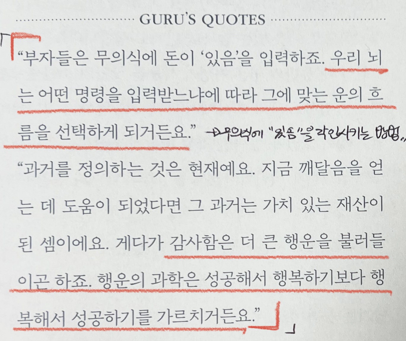 "우리 뇌는 어떤 명령을 입력받느냐에 따라 그에 맞는 운의 흐름을 선택하게 되거든요."