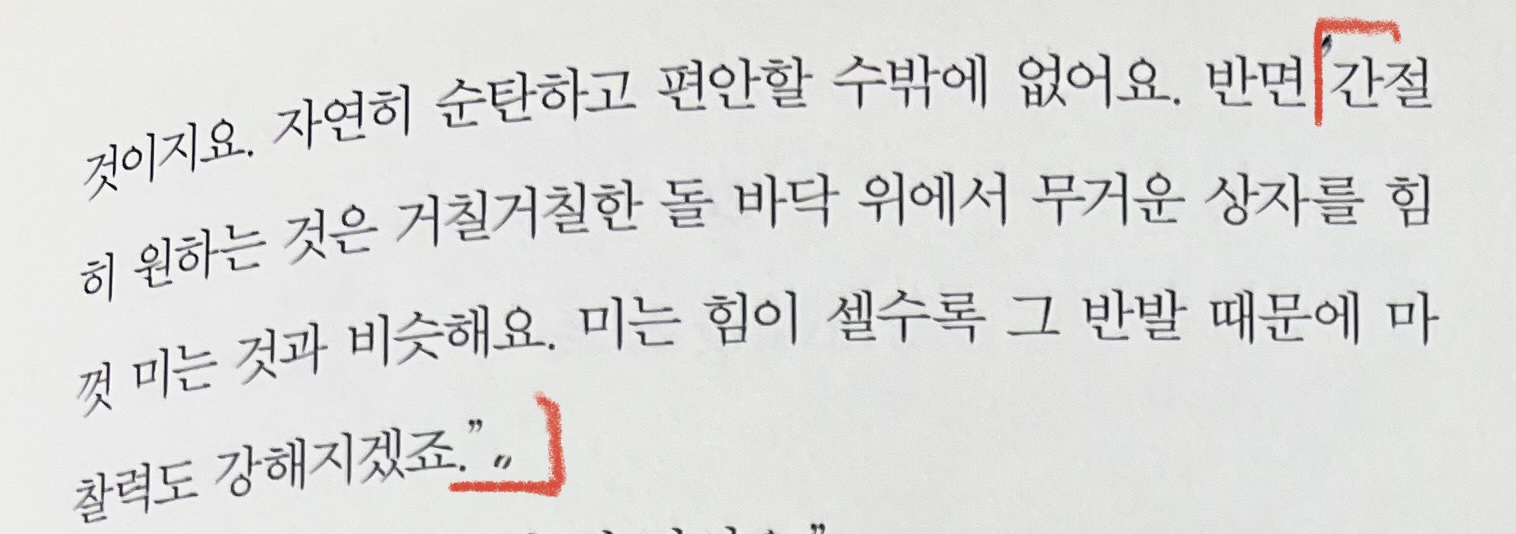 "간절히 원하는 것은 거칠거칠한 돌 바닥 위에서 무거운 상자를 힘껏 미는 것과 비슷해요.