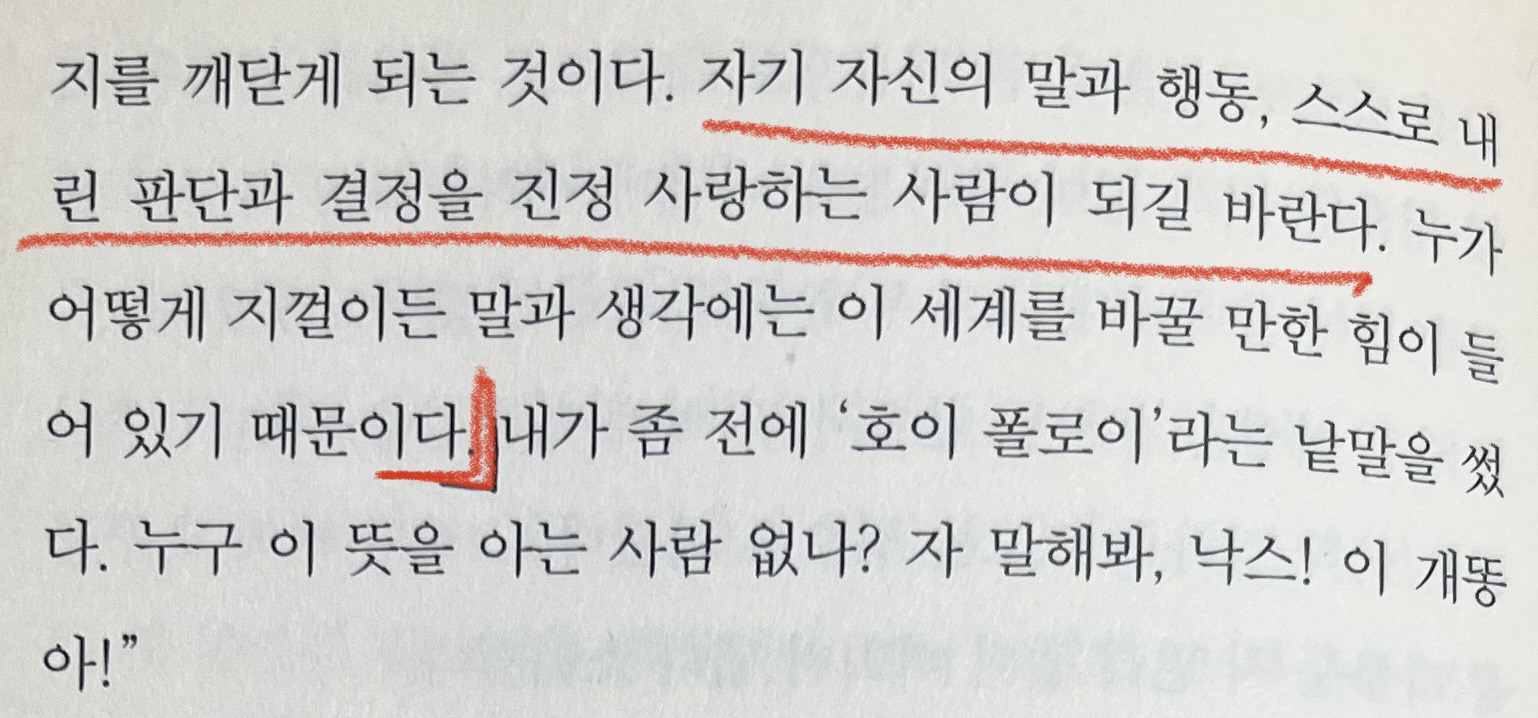 누가 어떻게 지껄이든 말과 생각에는 이 세계를 바꿀 만한 힘이 들어 있기 때문이다."