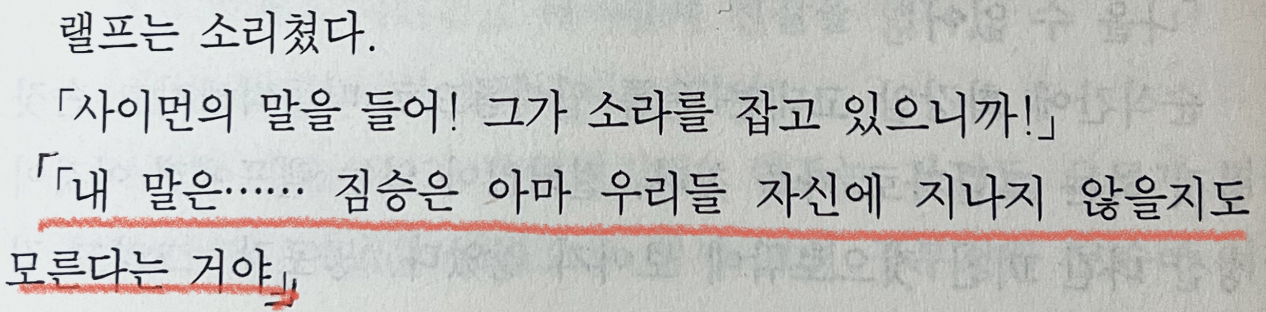 "내 말은... 짐승은 아마 우리들 자신에 지나지 않을지도 모른다는 거야."