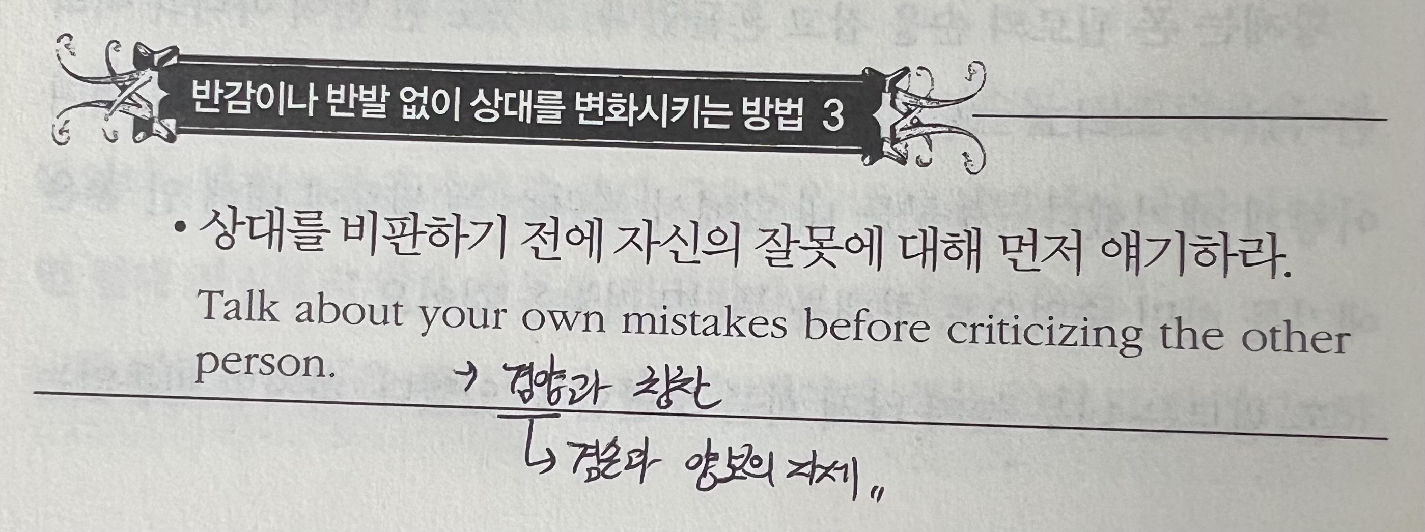 - 상대를 비판하기 전에 자신의 잘못에 대해 먼저 얘기하라.