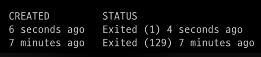 이와 같이 CREATED 된 지 2초만에 Exited가 되었더군요!