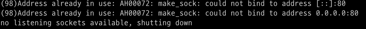 [아파치] (98)Address already in use: make_sock: could not bind to address [::]:80 에러 발생시
