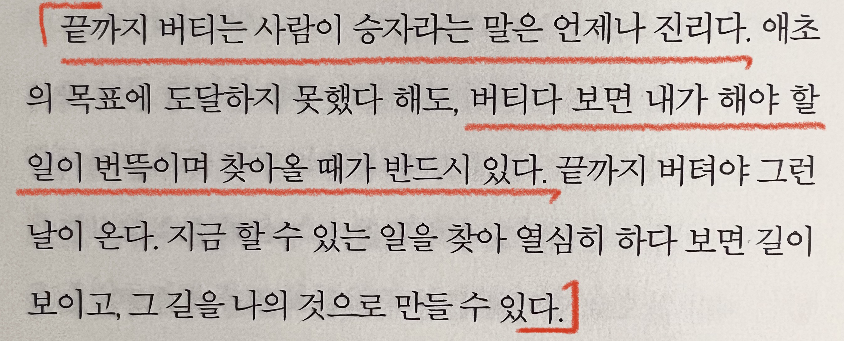 애초의 목표에 도달하지 못했다 해도, 버티다 보면 내가 해야 할 일이 번뜩이며 찾아올 때가 반드시 있다.