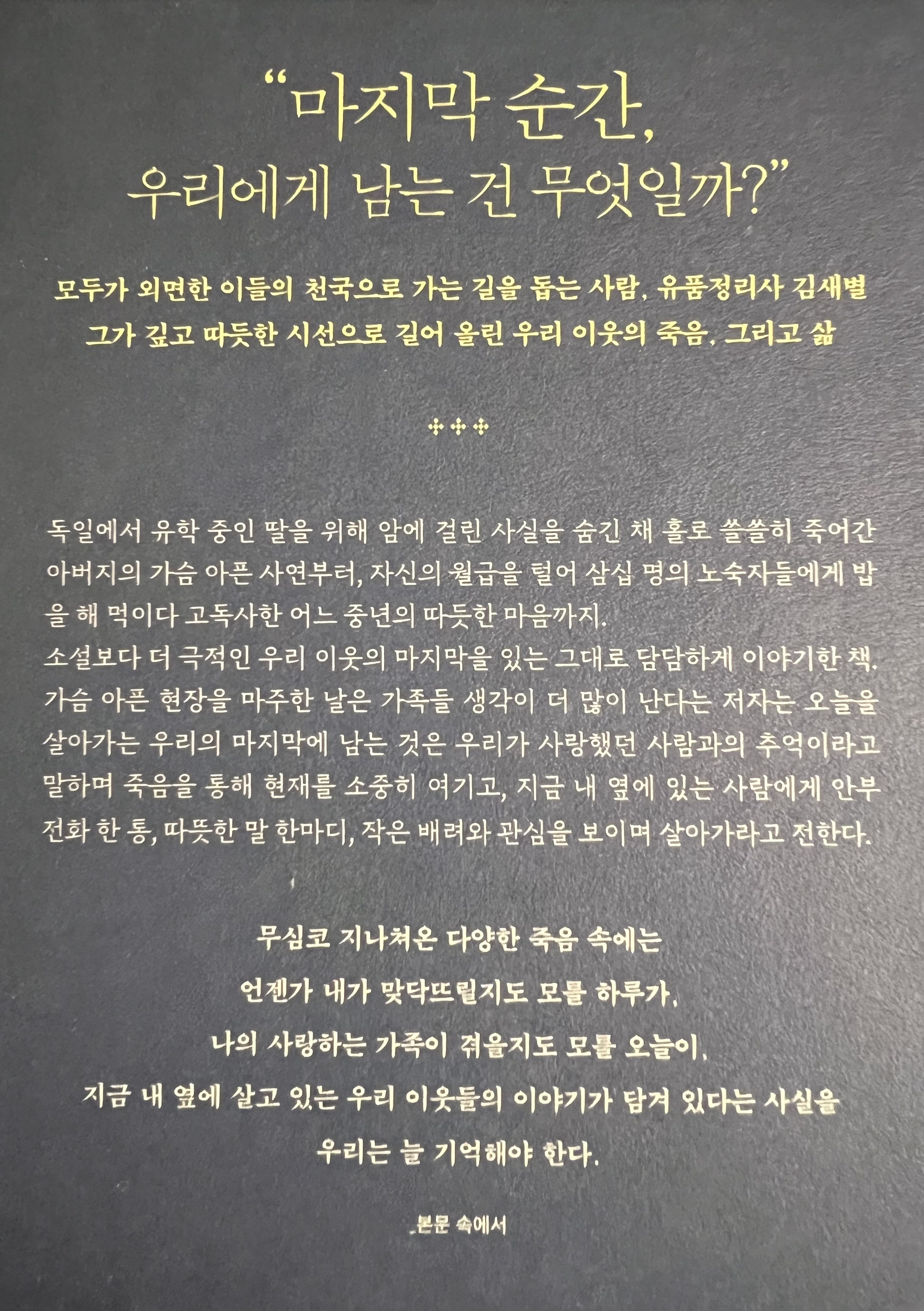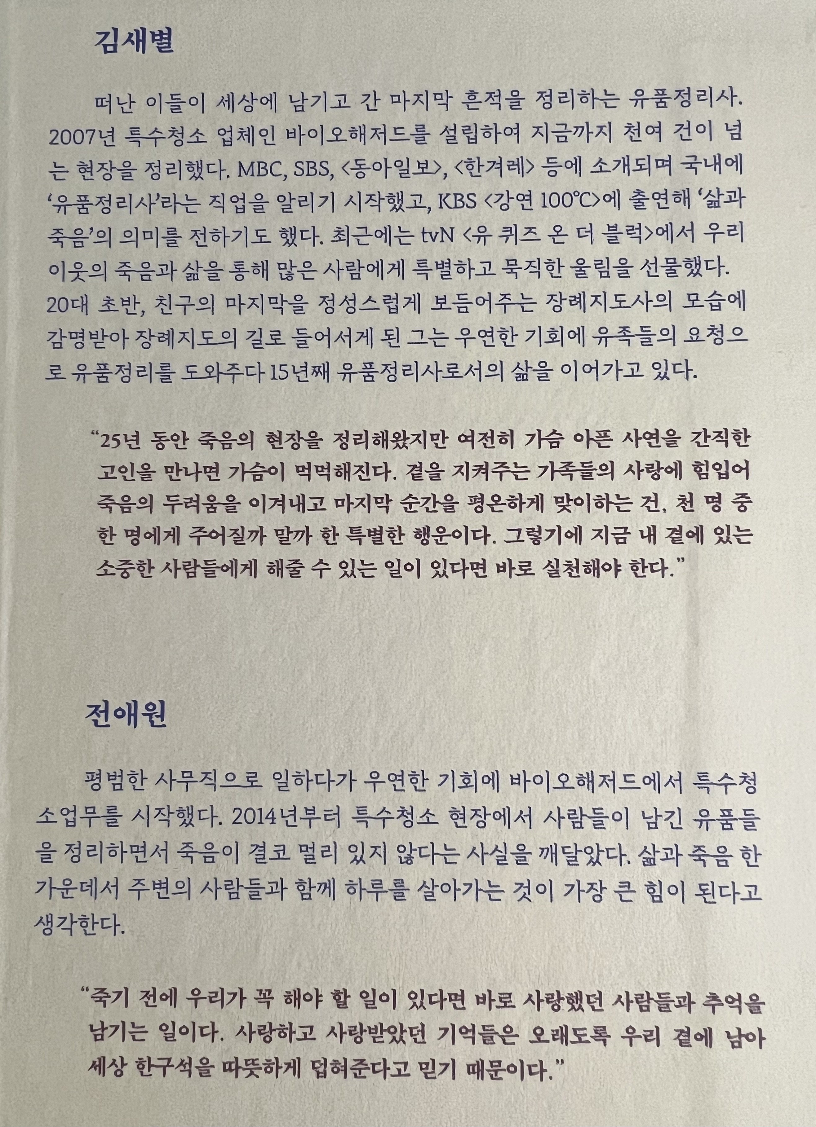 [북갈피] 죽은 자의 집 청소 - 누군가의 죽음으로 생계를 이어가는 특수청소부 이야기.