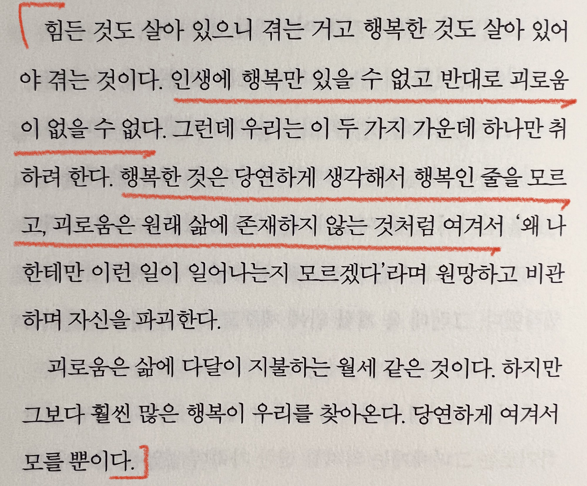"힘든 것도 살아 있으니 겪는 거고 행복한 것도 살아 있어야 겪는 것이다.