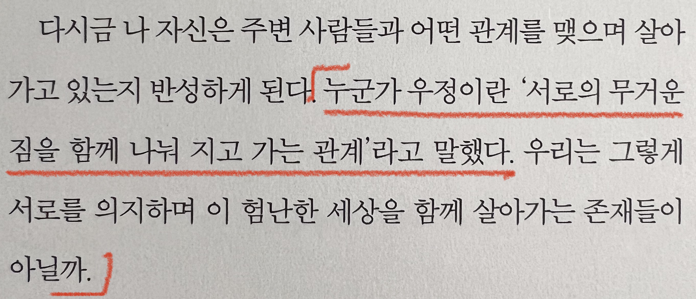 우리는 그렇게 서로를 의지하며 이 험난한 세상을 함께 살아가는 존재들이 아닐까."