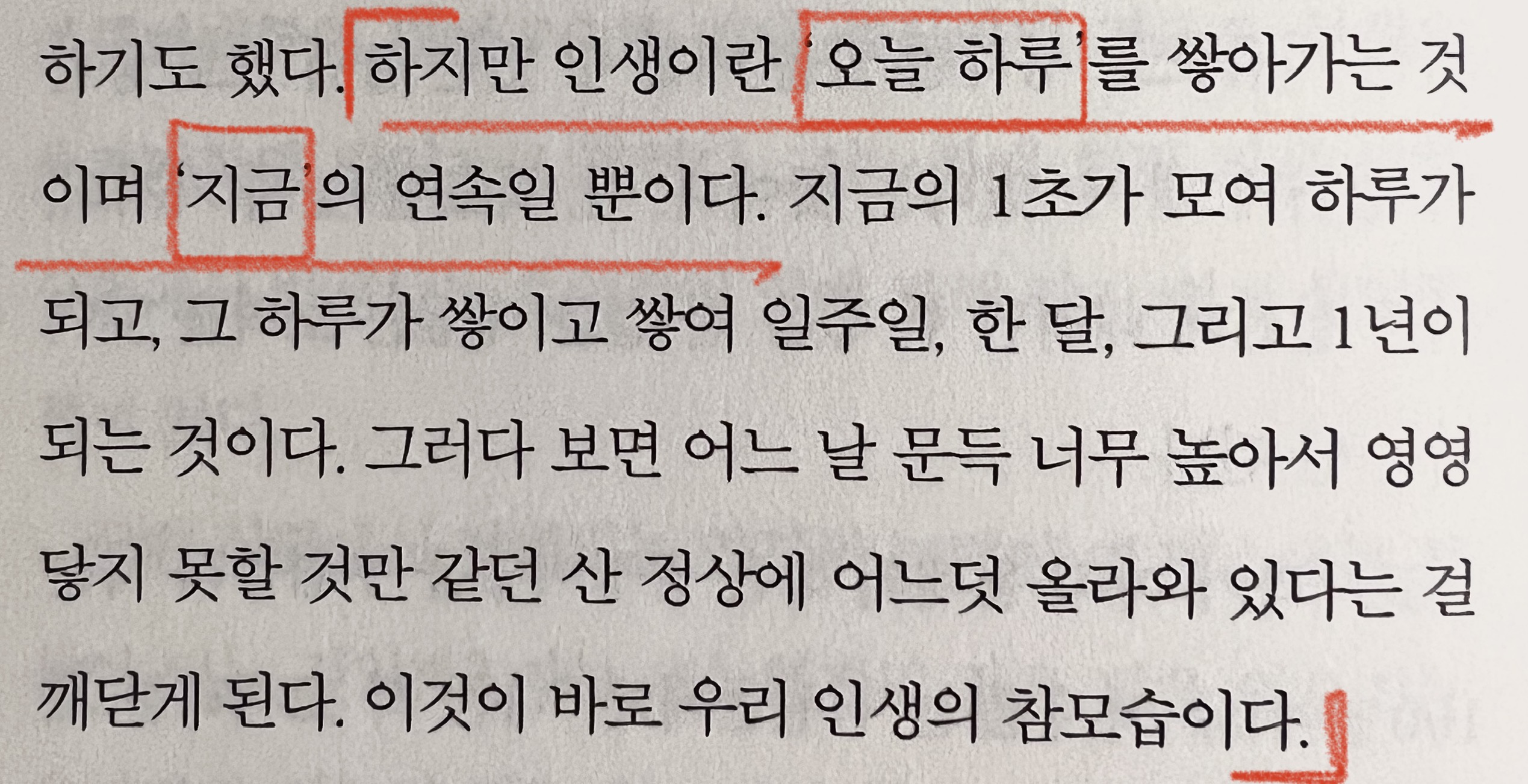 "하지만 인생이란 '오늘 하루' 를 쌓아가는 것이며 '지금'의 연속일 뿐이다.