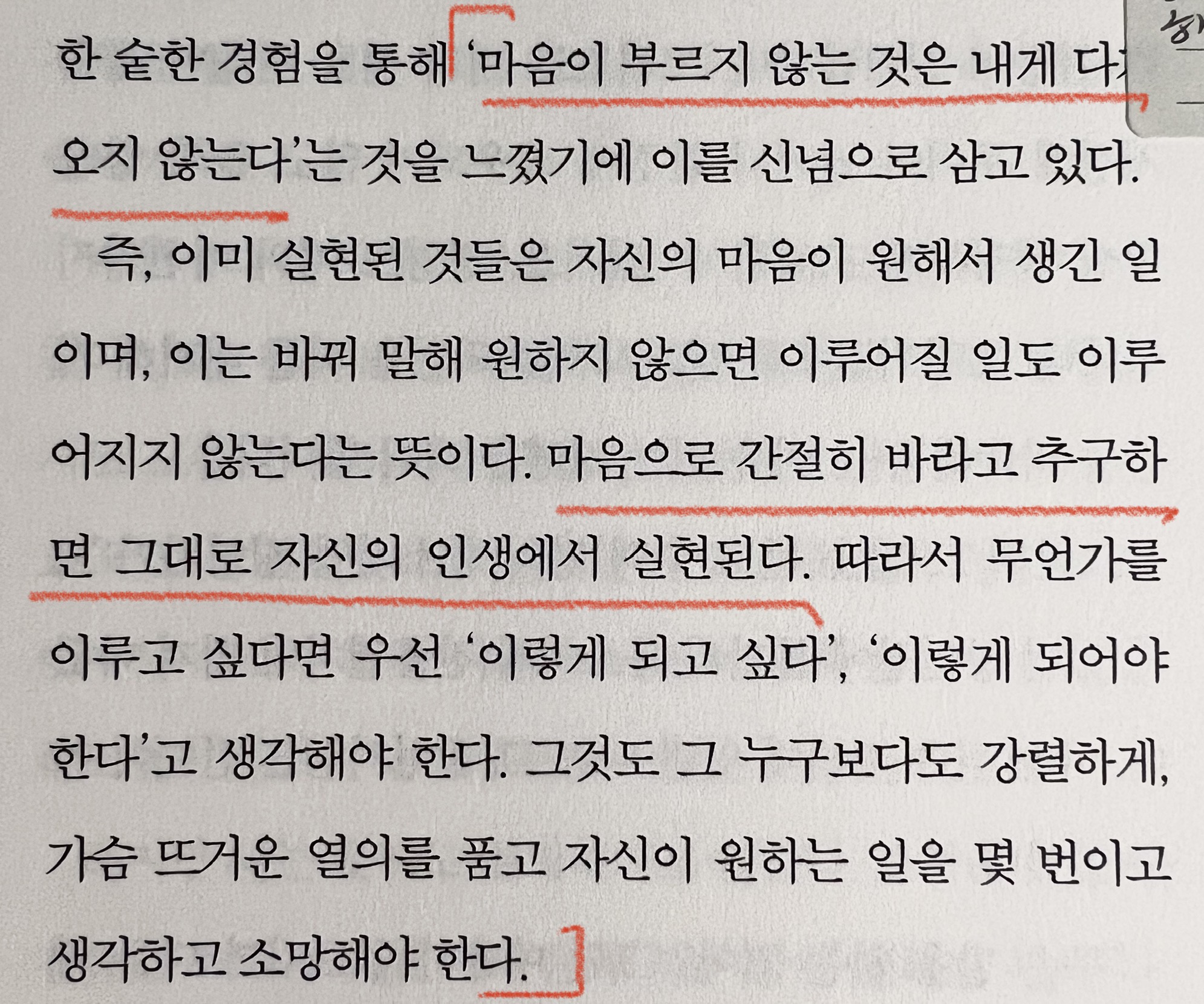 마음으로 간절히 바라고 추구하면 그대로 자신의 인생에서 실현된다.