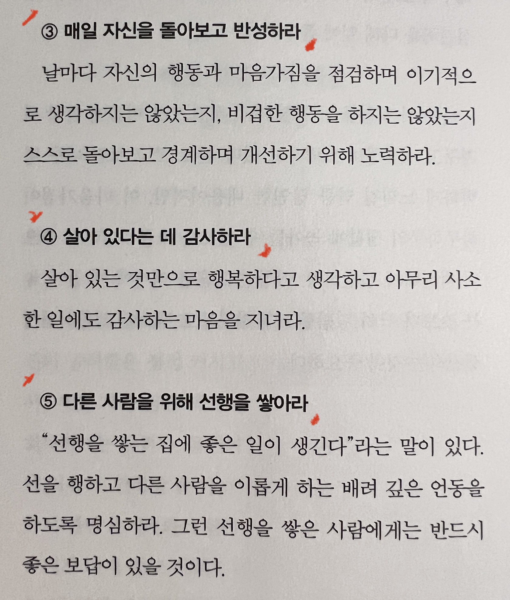 - 이기적으로 생각했거나, 비겁한 행동을 했다면 이를 돌아보고 경계하며 개선하기 위해 노력하기