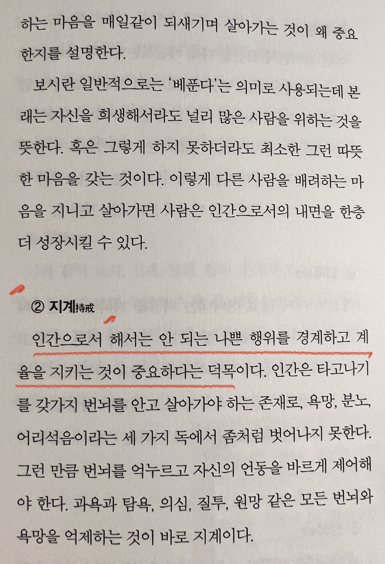 - 지계 - 인간으로서 해서는 안 되는 나쁜 행위를 경계하고 계율을 지키는 것이 중요하다는 덕목