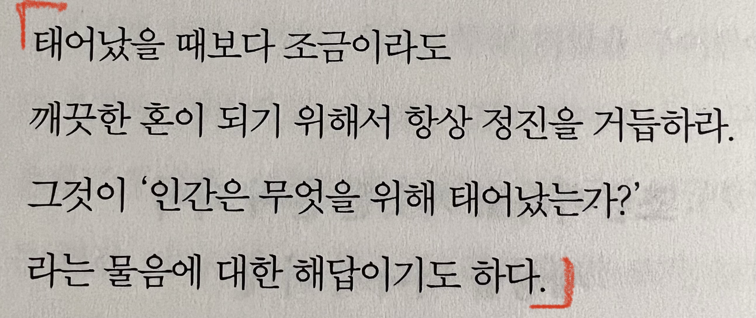 깨끗한 혼이 되기 위해서 항상 정진을 거듭하라.